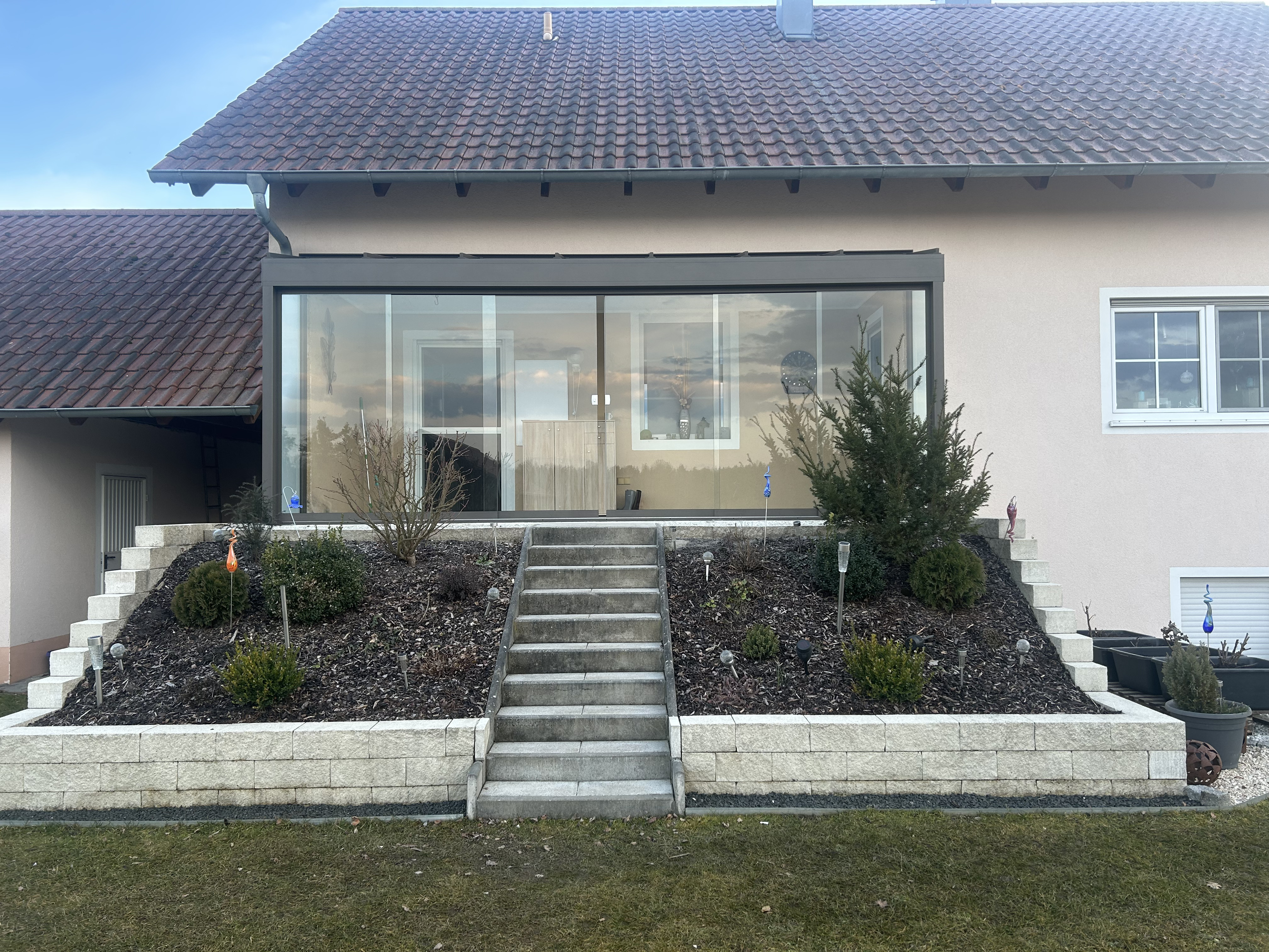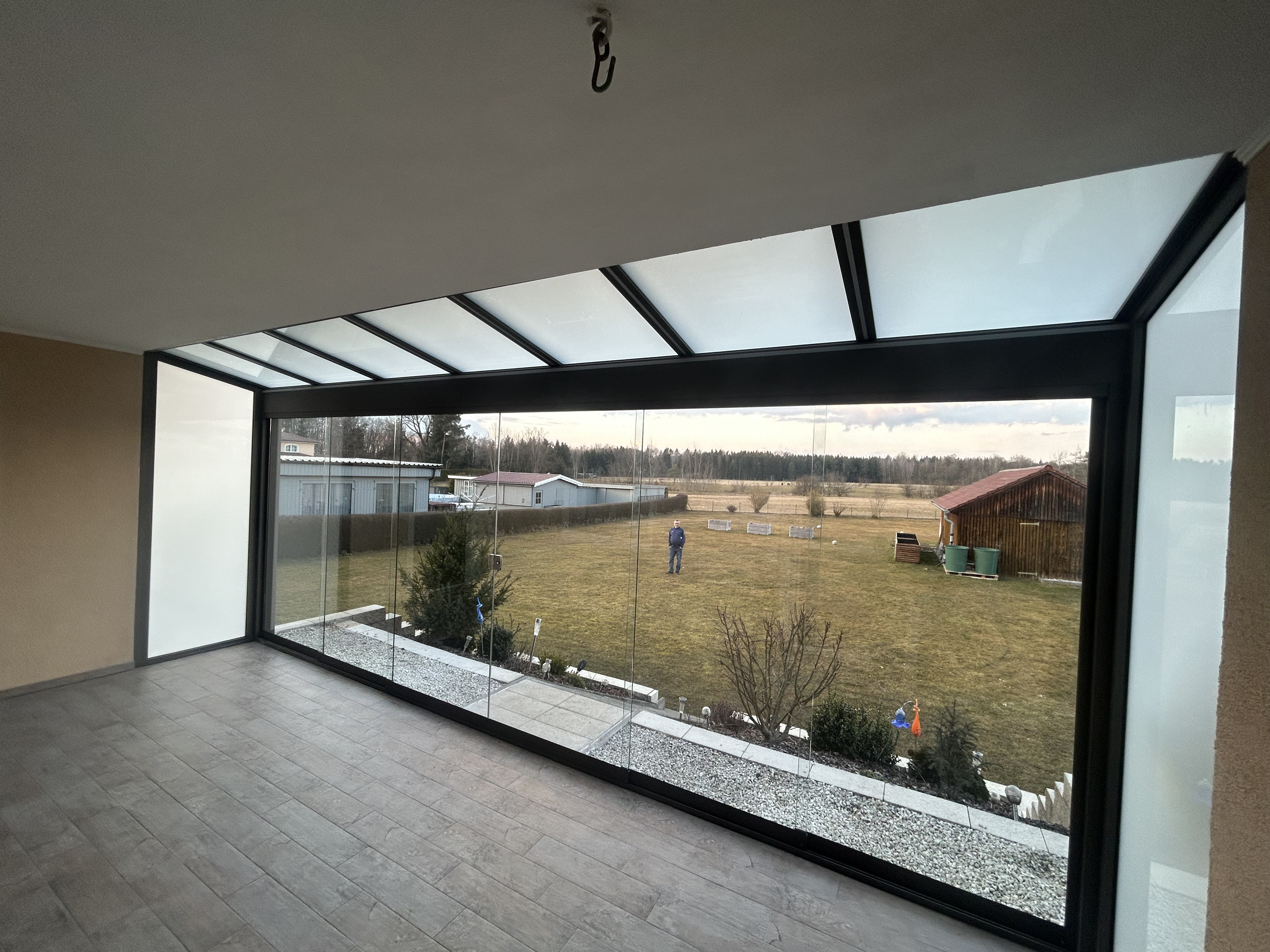 Ein überdachter Außenbereich bietet nicht nur Schutz vor Wind und Wetter, sondern schafft auch eine stilvolle und gemütliche Atmosphäre, in der Sie das ganze Jahr über Ihre Freizeit verbringen können. In Steinberg am See haben wir für einen privaten Bauherrn eine luxuriöse Terrassenüberdachung realisiert, die mit Senkrechtverglasung und Ganzglasschiebeelementen ausgestattet ist. Diese Kombination ermöglicht eine maximale Flexibilität: Öffnen Sie die gläsernen Elemente bei gutem Wetter für ein freies Outdoor-Gefühl oder schließen Sie sie bei kühleren Temperaturen – so haben Sie immer perfekten Schutz und Komfort.